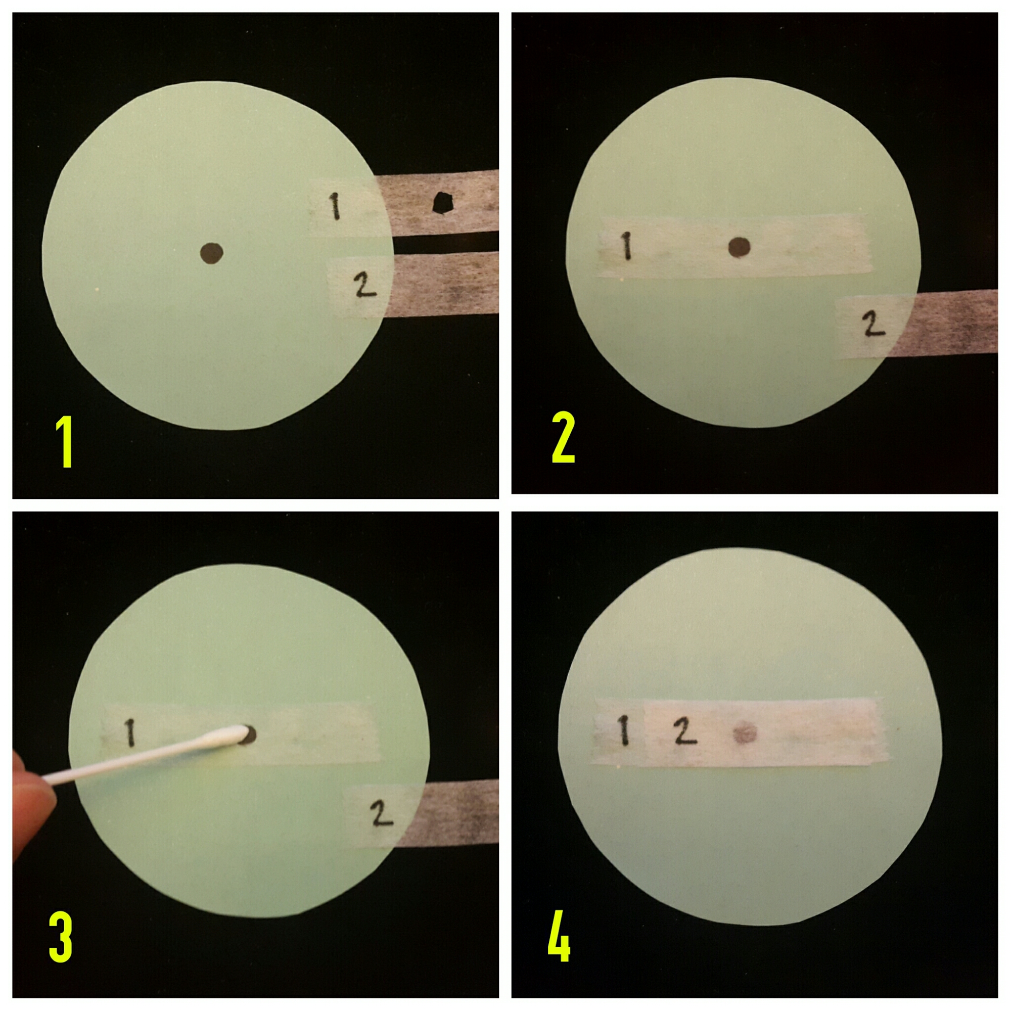 2) Posisikan mikropore nomor 1 di atas kutil, kutil persis berada di tengah lubang.