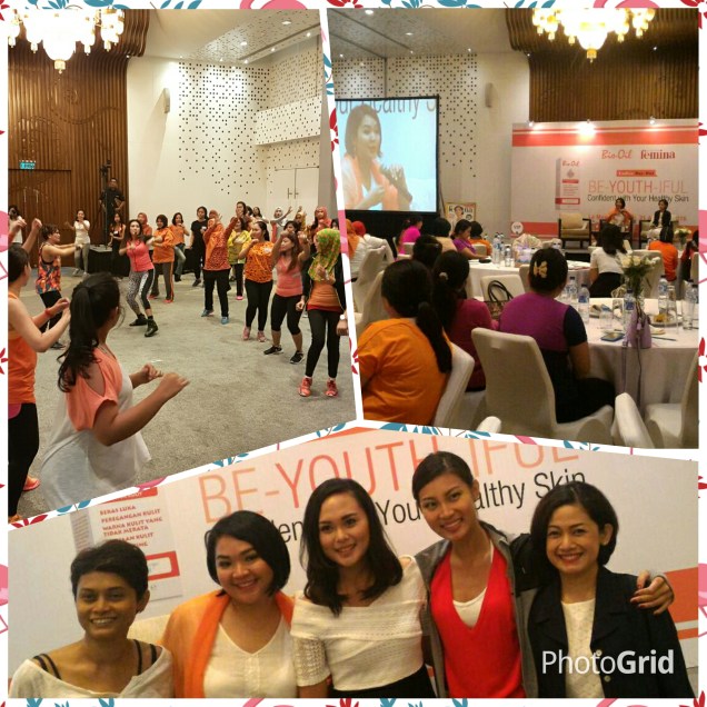 Pada hari Minggu, 21 Agustus 2016, ballroom hotel Le Meridien tampak meriah dengan taburan warna oren. Hari itu ada acara talkshow kecantikan yang diselenggarakan oleh Femina dan Bio-Oil. Acara dikemas dengan menarik, singkat, padat dan mudah dicerna oleh para hadirin. Dibuka dengan Zumba bersama mbak Liza Natalia, dilanjutkan dengan talkshow seputar kesehatan kulit oleh saya – dr. Rachel Djuanda, SpKK – , penjelasan mengenai Bio-Oil, ditutup dengan sharing oleh mbak Patricia Gouw selaku pemakai Bio-Oil. Pesan penting dalam pertemuan hari itu adalah: